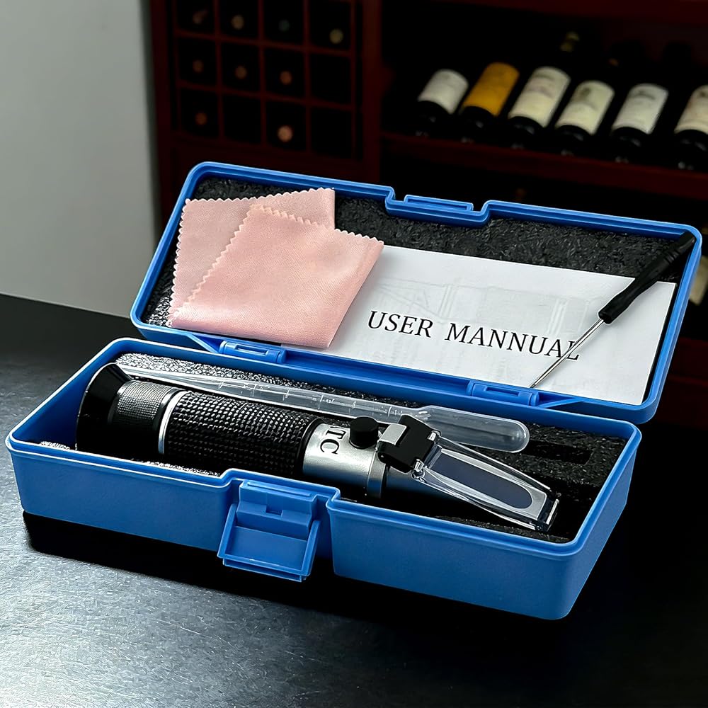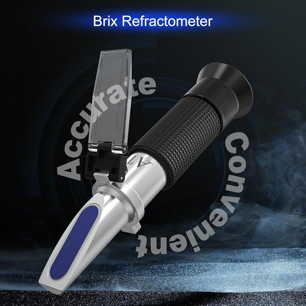 Versatile for Multiple Scenarios:Versatile refractometer (refractometro) for multiple scenarios: Brewing (wine/Brix/grape/alcohol refractometer, alcohol volume tool) to measure wort OG and sugar changes; Agriculture (honey refractometer for moisture, sugar content detector) to test fruit/vegetable sugar levels; Labs for sugar/alcohol solution quality control (also as Brix-salt meter). Suitable for home brewers, farmers and researchers
