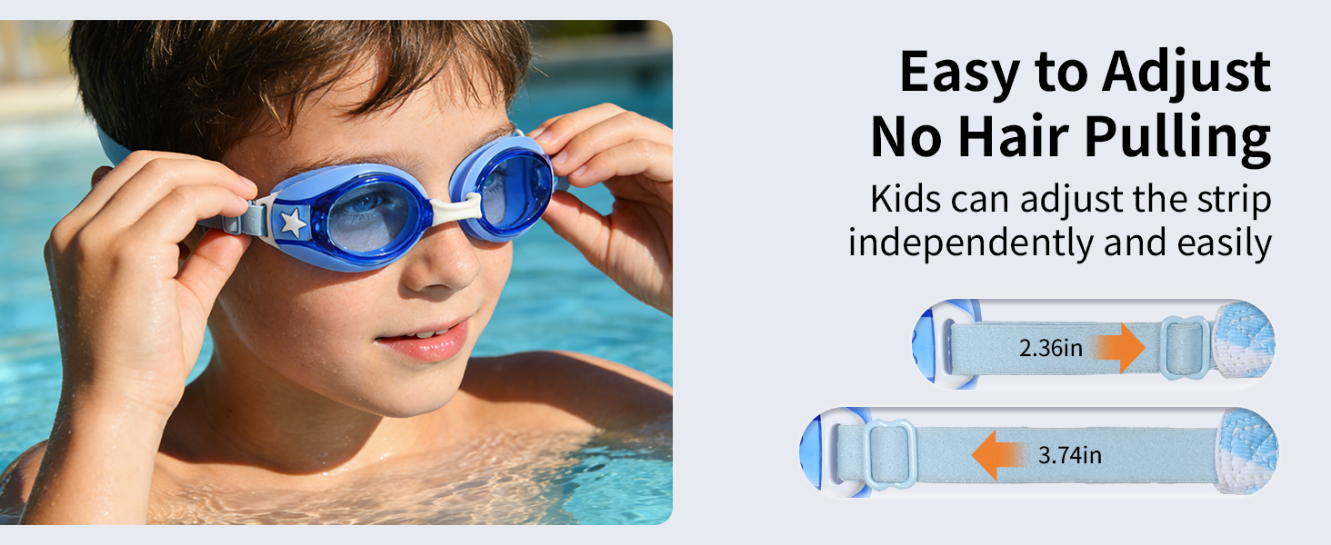 Adjustable No-Pull Fabric Strap: The soft fabric strap eliminate the hair-pulling and tangling issues, especially for kids with long or curly hair, much better comfort and hair-friendly than the conventional hard straps. Pixel Panda kids goggles with fabric strap ensures No more pulling hair and tangling pain.