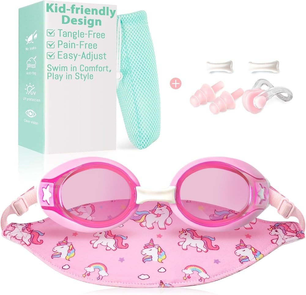 Complete Value Package - Comes with cases, ear plugs, nose clips, and 3 extra replacement nose bridges, complete set ready for swimming lessons, pool days, and beach visits with kids ages 3-14. 12-month quality support(Note: Avoid touching inner lens surface)