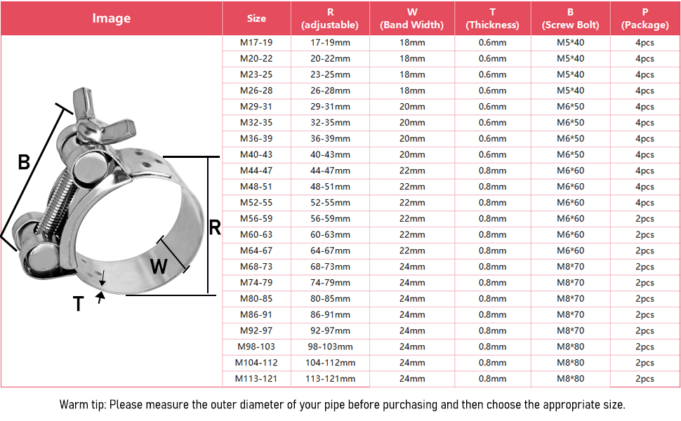 [Full 304 Stainless Steel: Durable & Corrosion-Proof] This T-bolt clamps are Made of high-quality 304 stainless steel, it has excellent corrosion, rust and high-temperature resistance. Works stably in humid or harsh outdoor environments, with a much longer service life than ordinary clamps, reducing replacement frequency and costs.