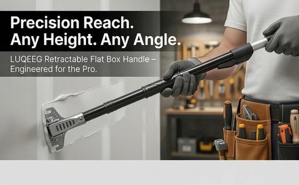 【Retractable Box Handle | Premium Anodized Aluminum】Constructed from high-strength, carbide-coated anodized aluminum, this extension handle for drywall offers exceptional rigidity and long-lasting performance. It resists corrosion and wear from daily job site use, providing a reliable, sturdy grip that won't bend or fail under pressure, making it a durable addition to your sheetrock tools kit.