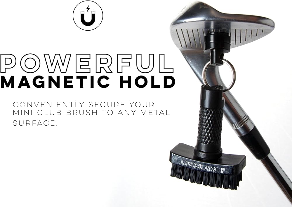 Links Golf – Mini Golf Club Brush, Portable Golf Club Cleaner with Quick-Release Magnet & S-Carabiner Clip, Heavy Duty Nylon Bristles for Golf Bag, Cart and Pants