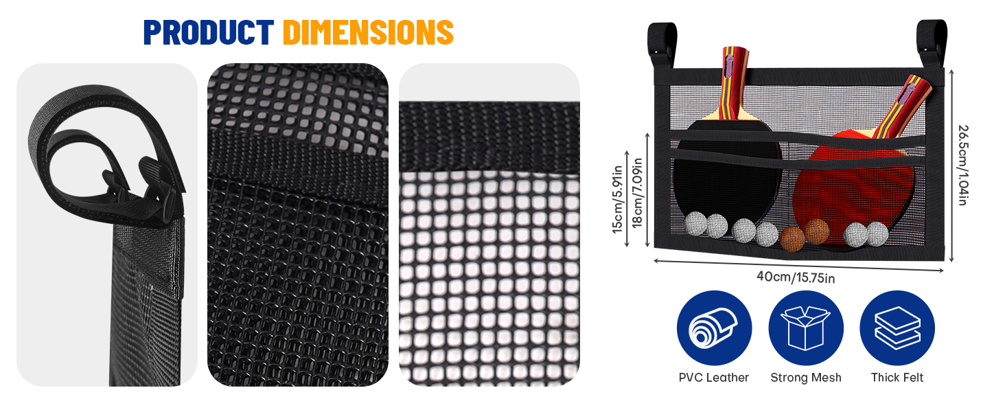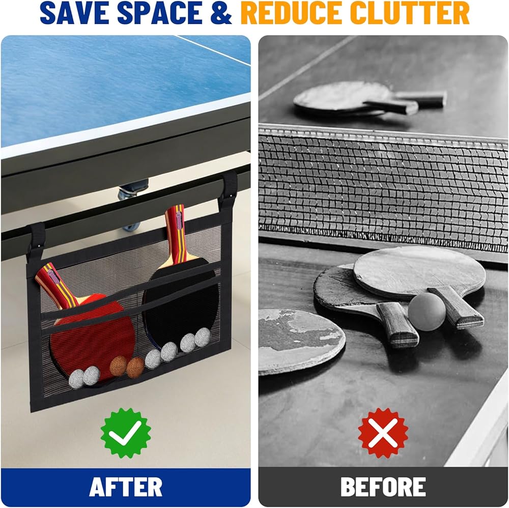 ✔Practical Under-Table Storage: Equipped with two adjustable straps, which enables you to fix the storage bag below the crossbar of the table, making it convenient to access the rackets and balls.
