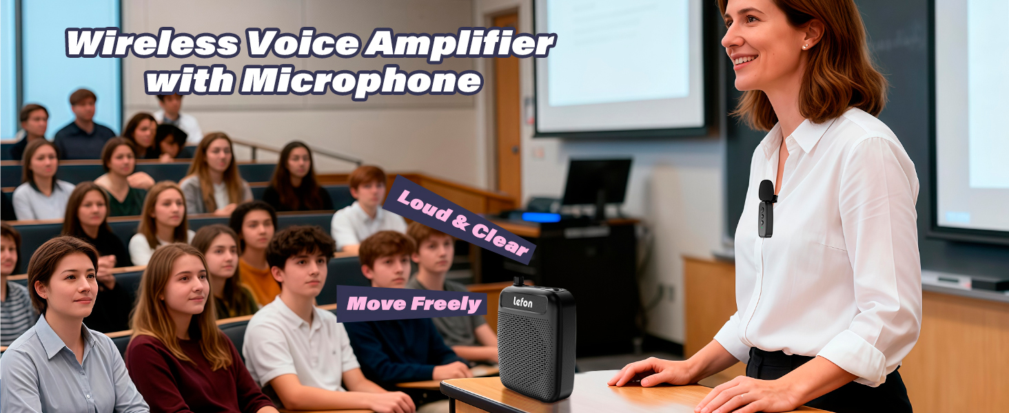 【Wireless Lavalier Mic】 The high-sensitivity wireless microphone captures your true vocal tones and can be clipped onto collars or ties, enabling free movement up to 49 feet from the amplifier without signal loss. Say goodbye to tangled wires and discomfort caused by traditional wired headset mics.