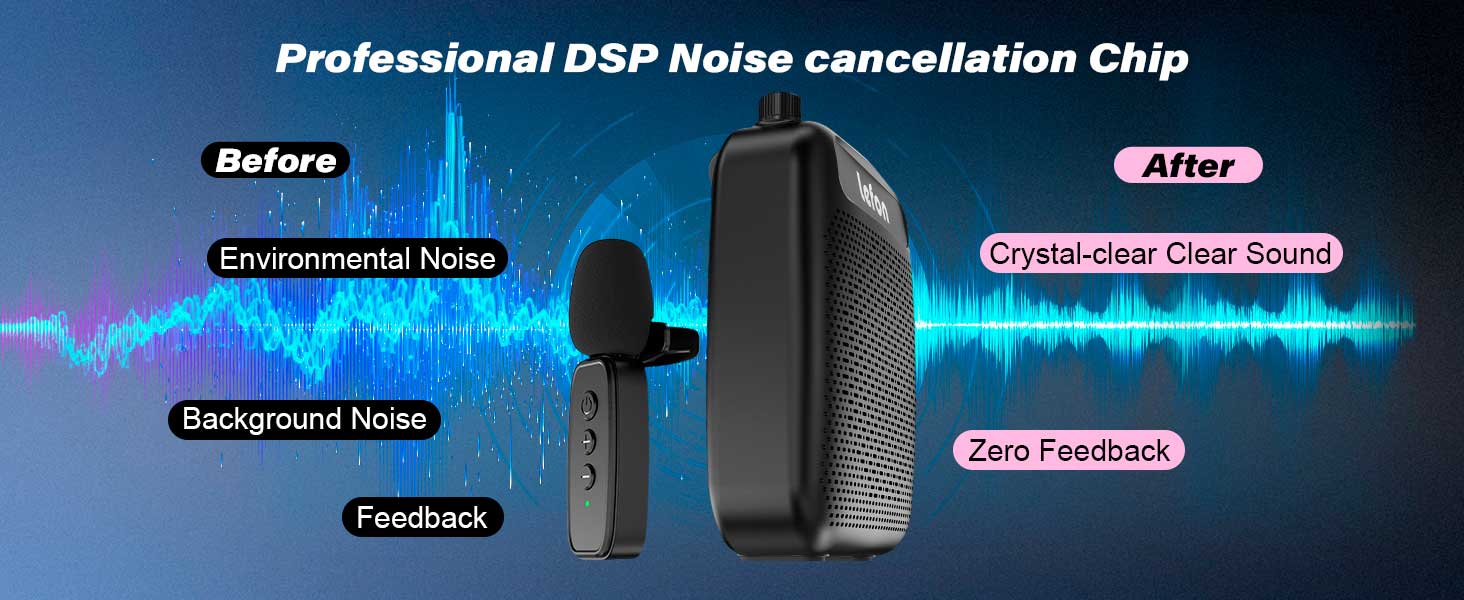 【Long Battery Life】 The portable voice amplifier built in 2000 mA rechargeable battery that supports 12–15 hours of continuous use on a single charge. The wireless mic lasts 5–6 hours. Only needs 3~4 hours to fully charge them with the USB-C charging cable.