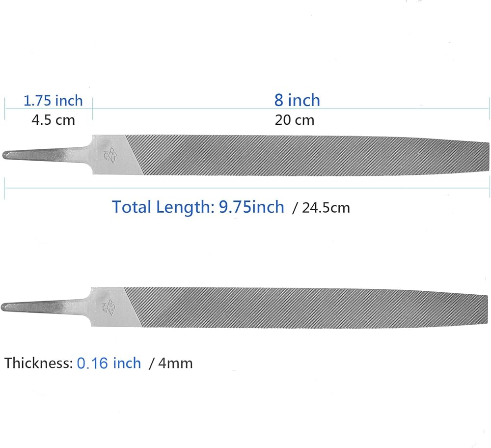 - File Size: 8inch (20cm) Flat Metal Axe file; Total length: 9.75inch (24.5cm) ; thickness: 0.16 inch(4mm).