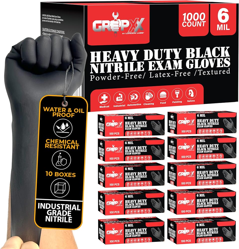 Heavy Duty 6 Mil Black Nitrile Gloves, Disposable Latex&Powder Free, Mechanic, Food Prep, Tattoo(1000 CT)