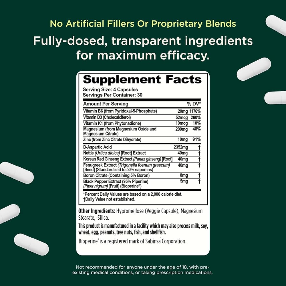 Boost Natural Testosterone & Muscle Growth: Clinically backed ingredients like D-aspartic acid, fenugreek, and magnesium help support your body's natural testosterone production—enhancing protein synthesis, increasing strength, and promoting lean muscle mass.
