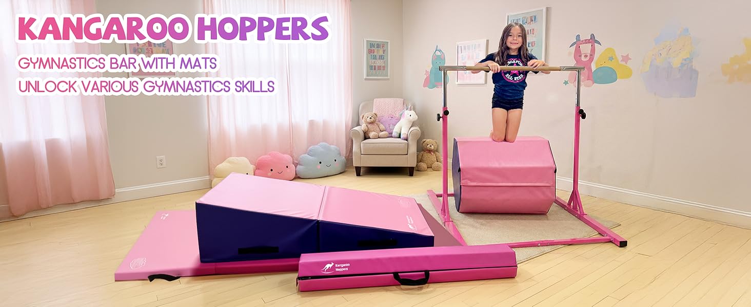 【EASY INSTALLATION】Kangaroo Hoppers gymnastics bar is easy to assemble and operate. Whether you want to use it at home or backyard, you can complete the assembly in a short time