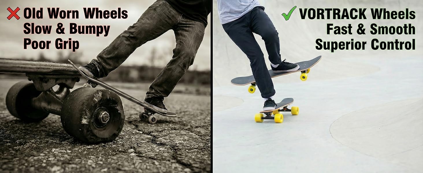 【Wear-Resistant Construction for Long-Lasting Use】Durable, premium material resists flat spots, abrasion, and impact damage from rails, curbs, and hard landings. These heavy-duty skateboard wheels hold their grip and shape through countless sessions, reducing the need for frequent replacements and saving you money over time.