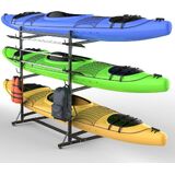 Sturdy and Durable: Heavy duty steel construction with black powder coated finish ensures durability. Padding protects the kayak from damage and ensures durability. Each tier can support up to 100 lbs and total weight up to 300 lbs.