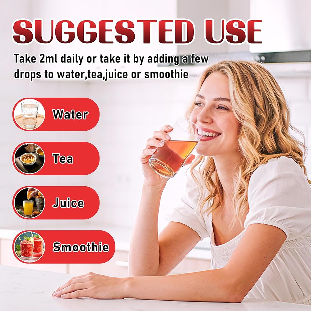 Comes in a durable glass bottle with a dropper for precise control. The liquid form allows for easy absorption and convenient use at home or on the go,perfect for supporting your daily wellness routine.