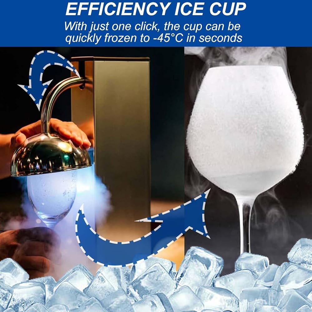 Our Fast frost ice cup machine is a glass cooling device designed for bars, restaurants, ice cream shops and other places to ensure that drinks maintain the best taste and concentration and avoid dilution of drinks caused by melting ice.