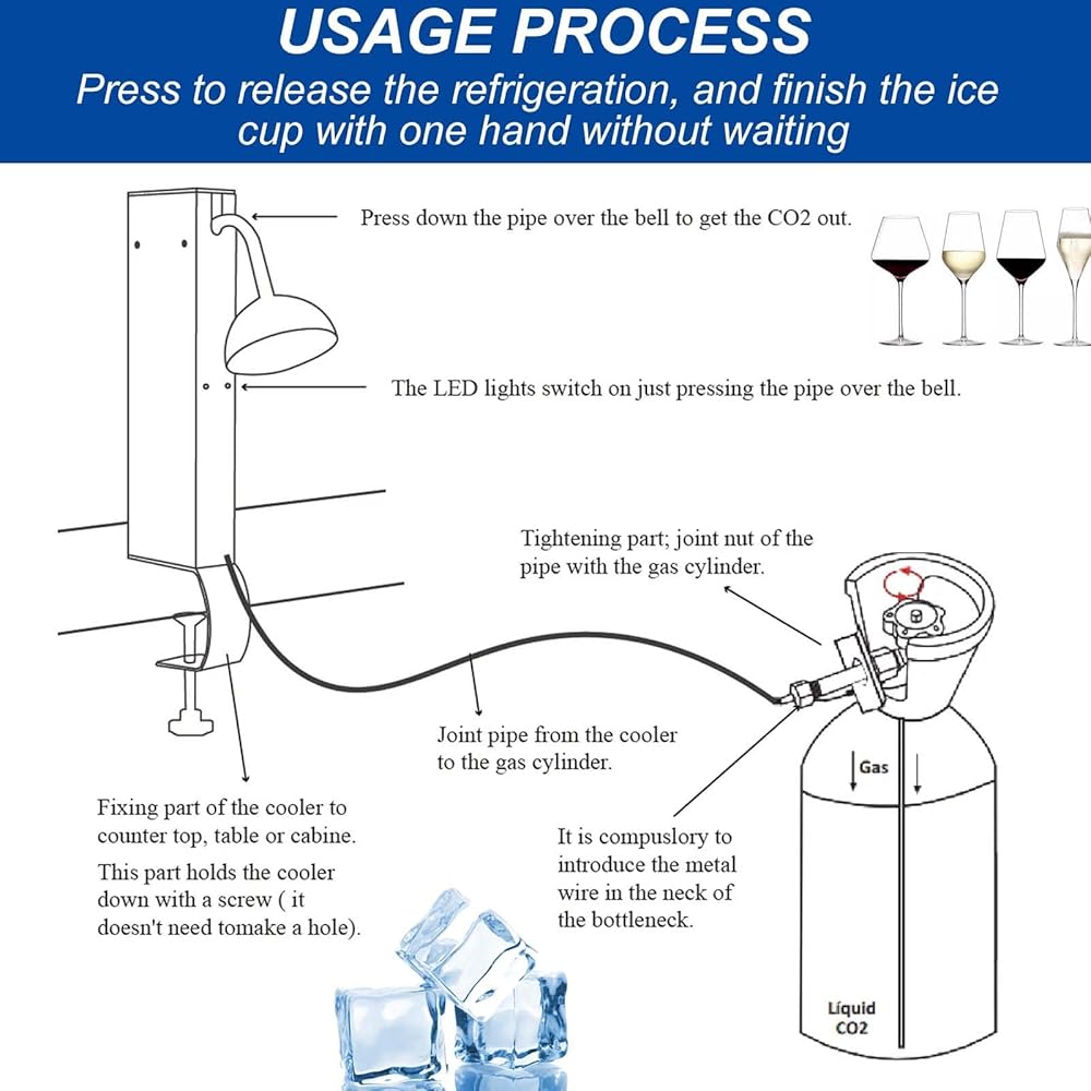 The stainless steel shell is easy to clean and suitable for all kinds of glass and ceramic cups to improve the taste and quality of drinks. Using a CO2 cylinder with a siphon, your cups and glasses can be cooled instantly, so that you can serve cool and fresh wine, cocktails, beer, juice, smoothies, champagne or mixed drinks.