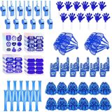 204 Pcs Team Spirit Accessories School Spirit Items - Cheerleading Pom Poms, Whistles, Thunder Sticks, Hand Clappers for Tailgates Football Baseball Sports Events