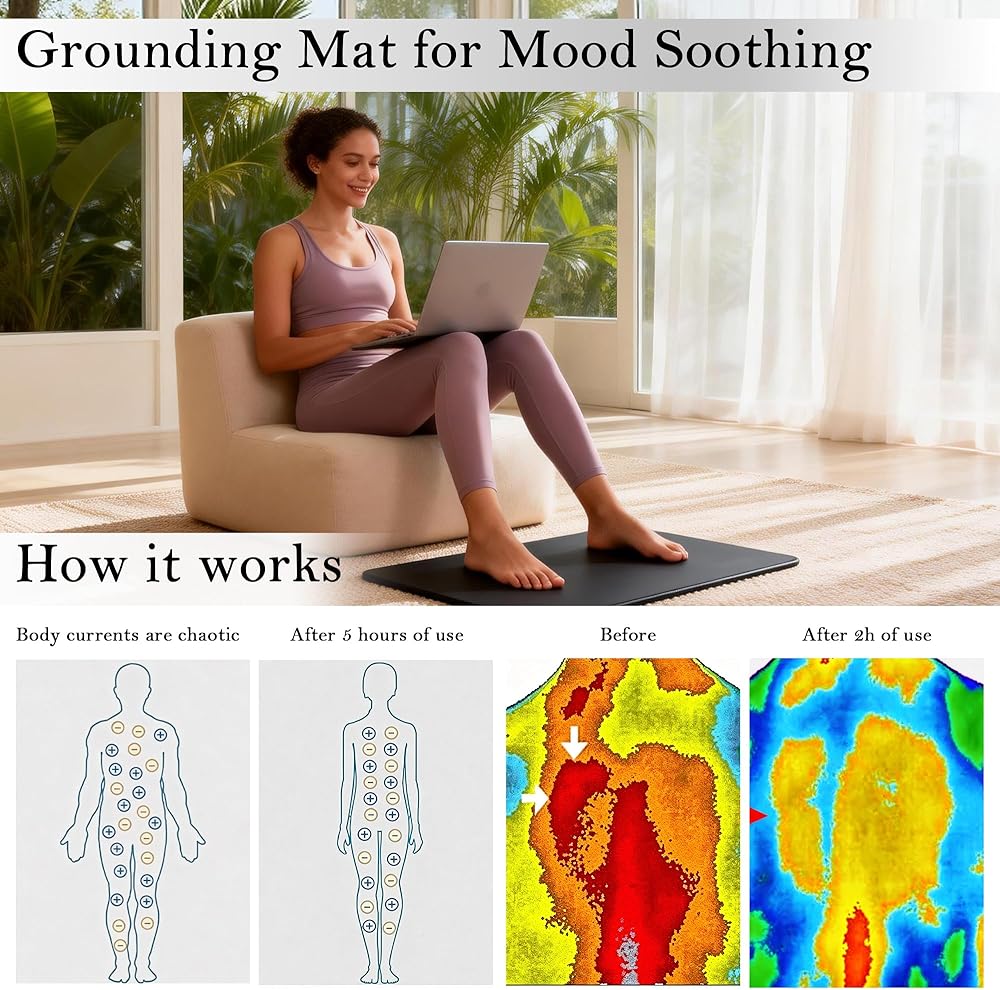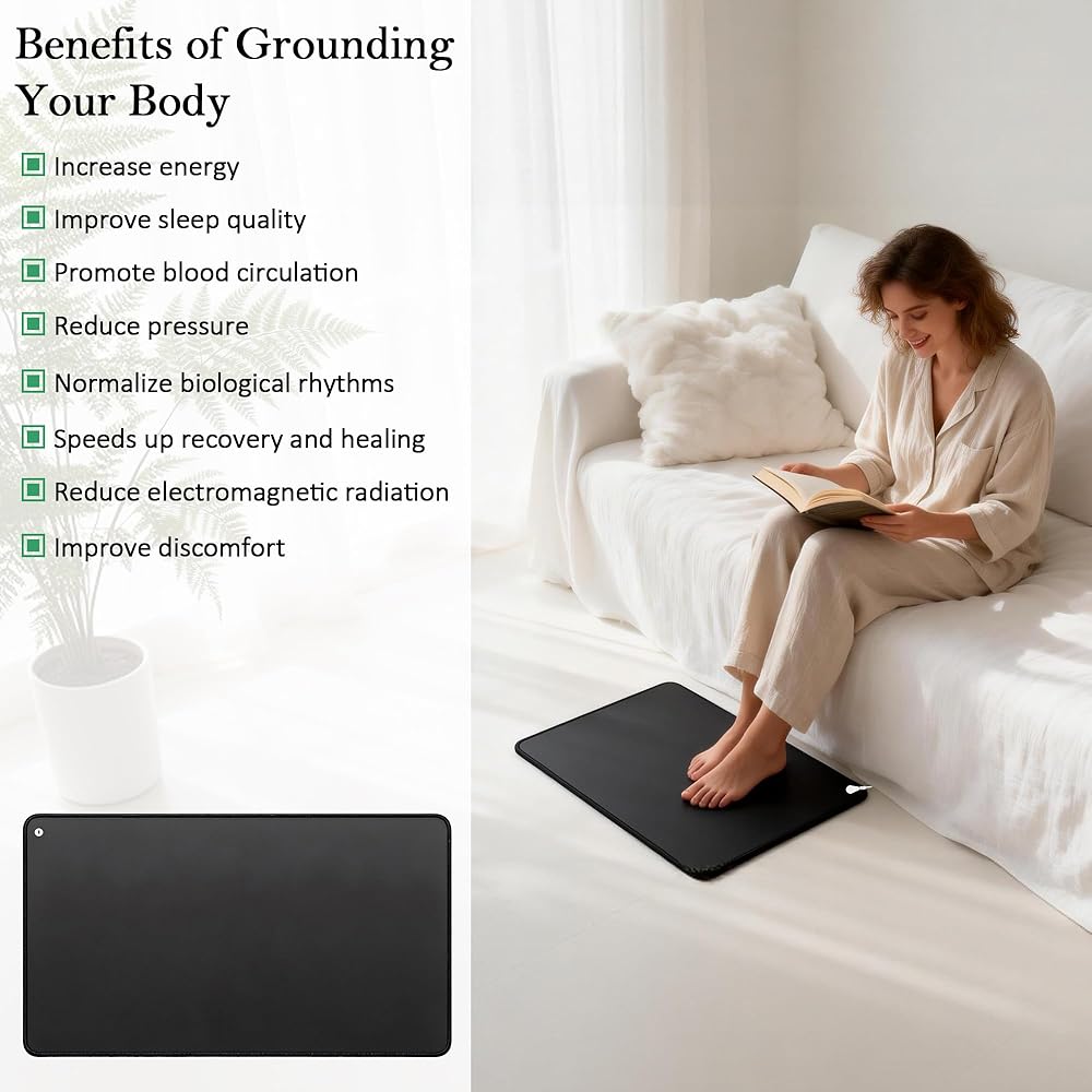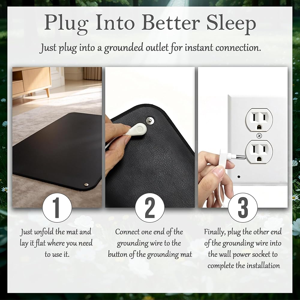 Simple & Effortless to Use – No complicated setup or outdoor access is required! The grounding mat comes with a standard US grounding cord (included). Simply connect one end of the cord to the mat and the other end to any 3-prong grounded electrical outlet or grounding rod, and you can enjoy safe indoor earth connection in seconds. Even if you are a beginner, you can easily master the use method without additional tools