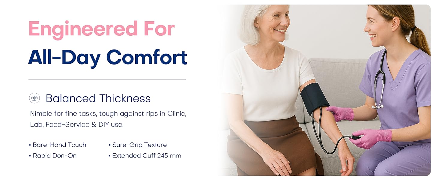 Allerge Safe - 100% Powder-free & Latex-free gloves eliminates common allergies; skin-friendly material for worry-free wear on sensitive hands.