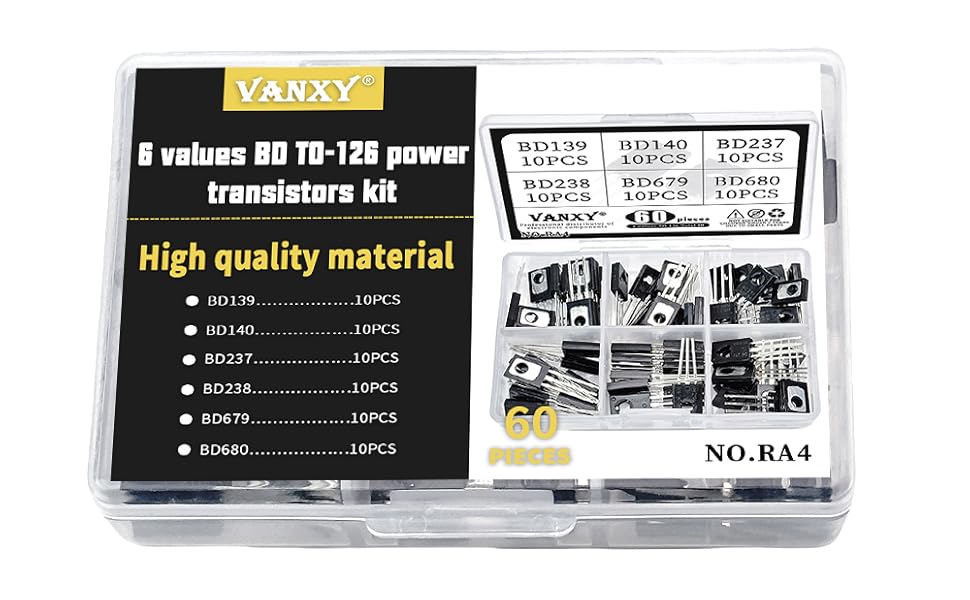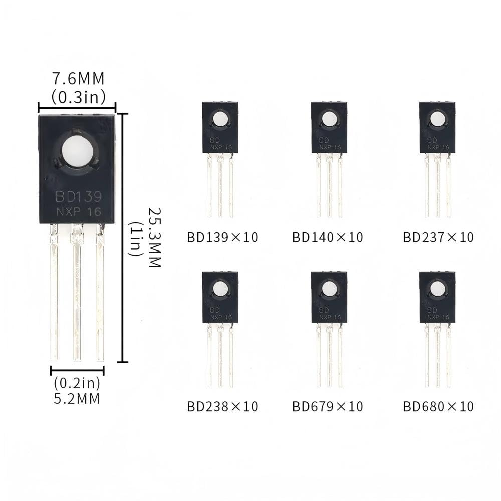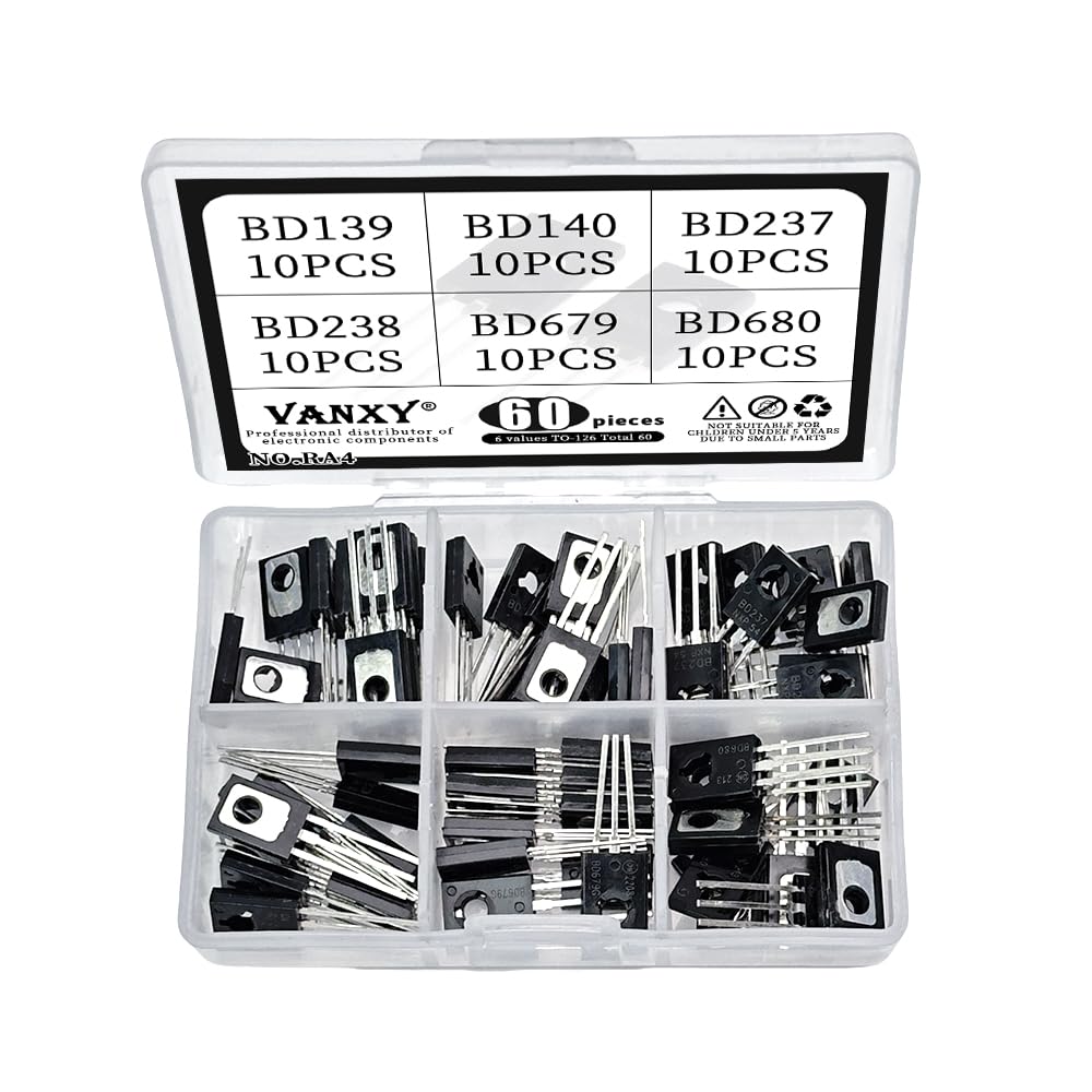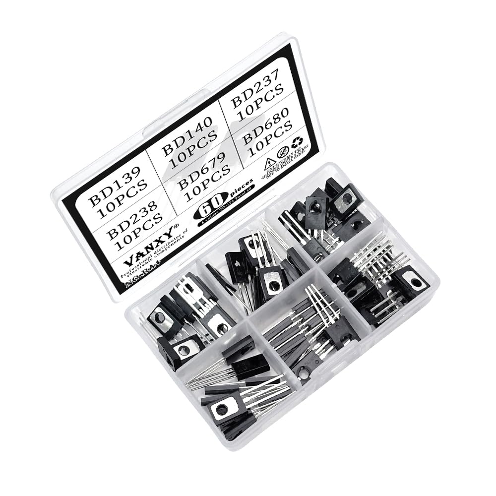 BD139 BD140 BD237 BD238 BD679 BD680 TO-126 Transistor Kits 6Values*10pcs=60pcs Power Transistors for Circuit Design, Repair, Learning & Experiments