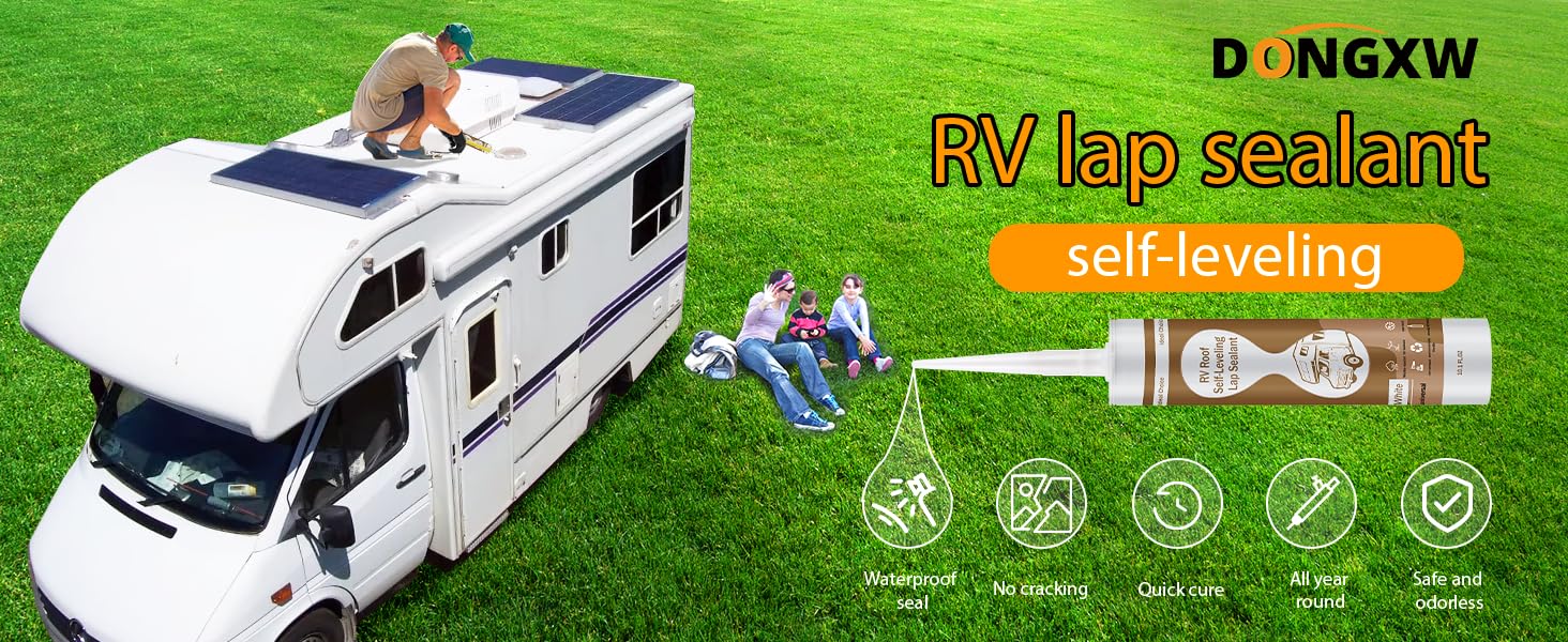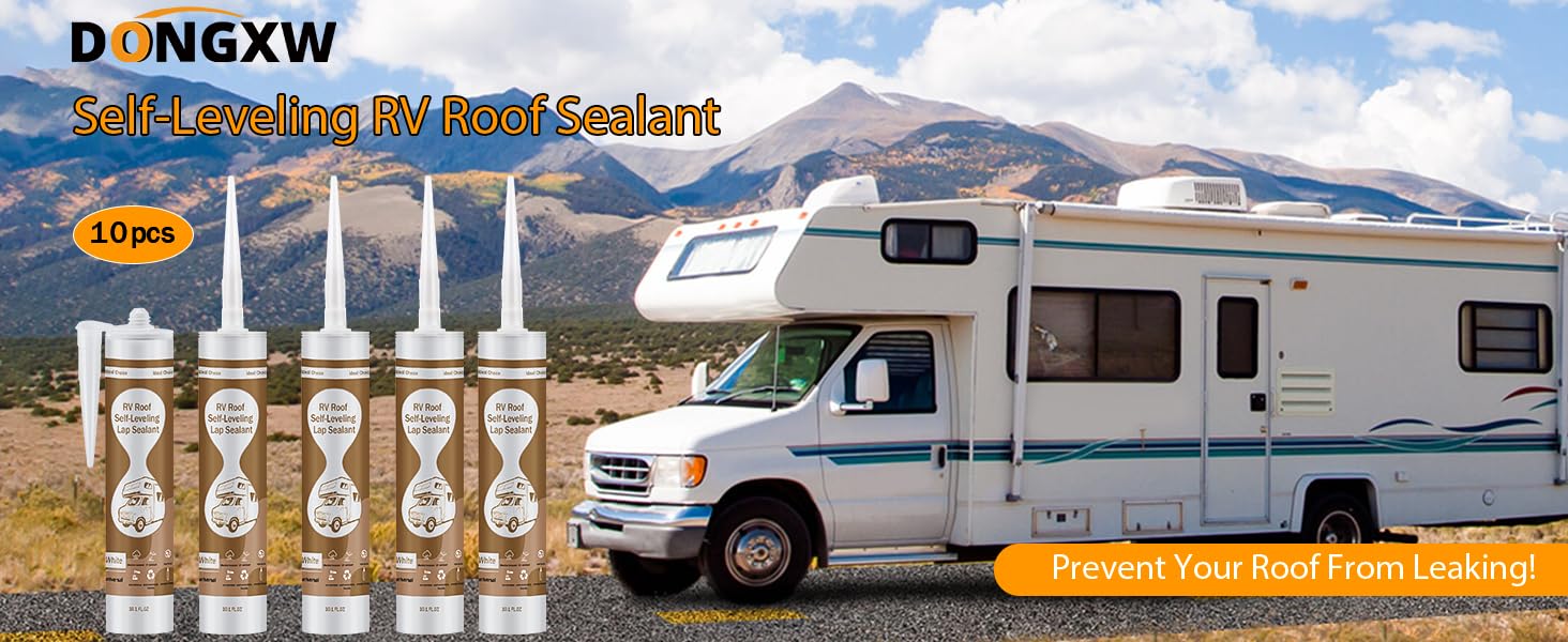 Self-Leveling RV Roof Sealant: Dongxw self-leveling RV roof sealant provides superior self-leveling properties, forming a smooth, flat surface within 30 seconds. It perfectly covers and seals gaps, ensuring efficient repairs without the need for extra steps, making it ideal for all types of RV roof sealant applications
