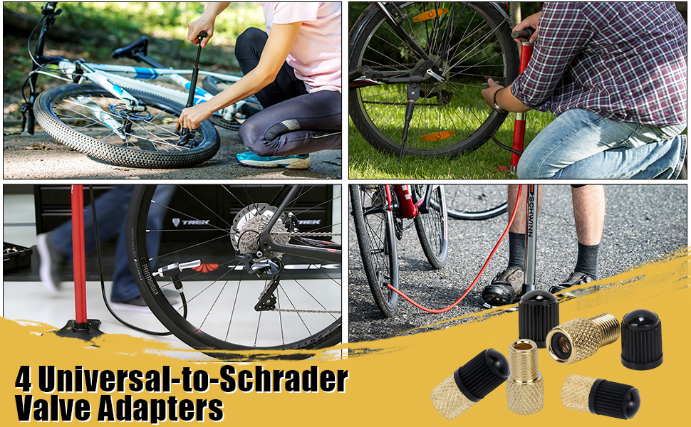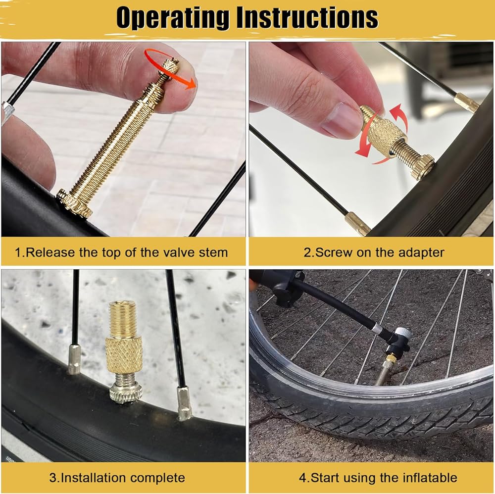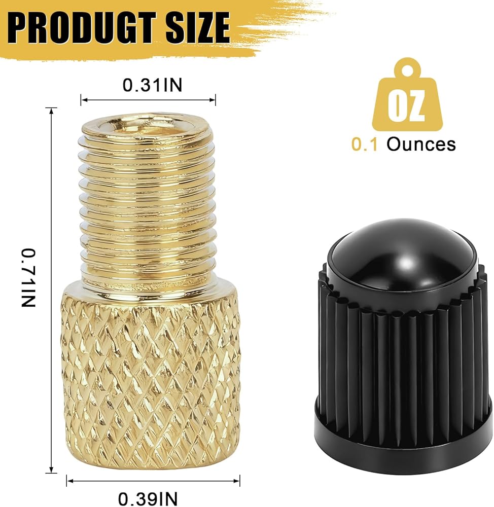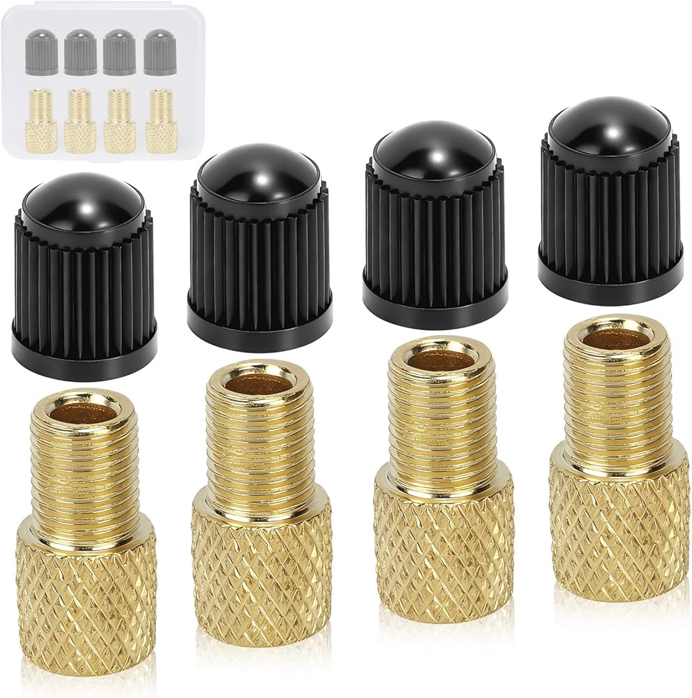 【4-Pack Complete Kit with Valve Caps】This all-in-one set includes 4 pieces of high-quality Brass Presta to Schrader Adapters and 4 matching Valve Caps. The generous 8-piece package ensures you have a reliable adapter ready at home, in the garage