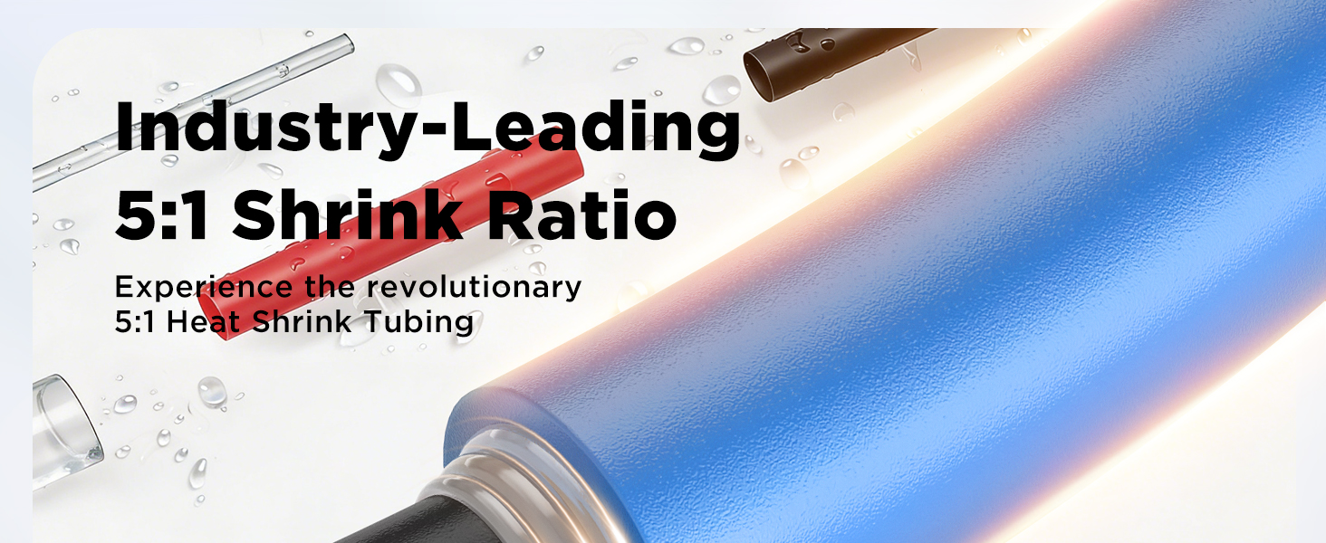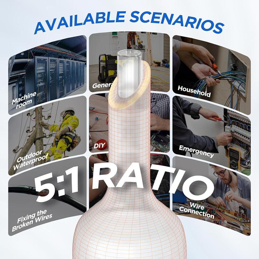 [Industry-Leading 5:1 Shrink Ratio] Experience the revolutionary 5:1 shrink ratio that sets our heat shrink tubing apart from the competition. This unique feature allows for a snug fit on a variety of wire sizes, ensuring maximum coverage and protection.