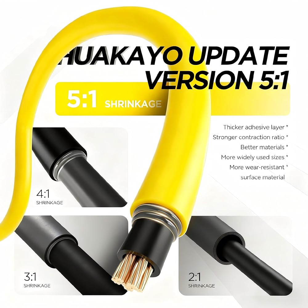 [Outstanding Adhesive Lined] The adhesive lined quantity of the 5:1 heat shrink tubing is double that of the 3:1, which means stronger adhesion and better waterproof performance.