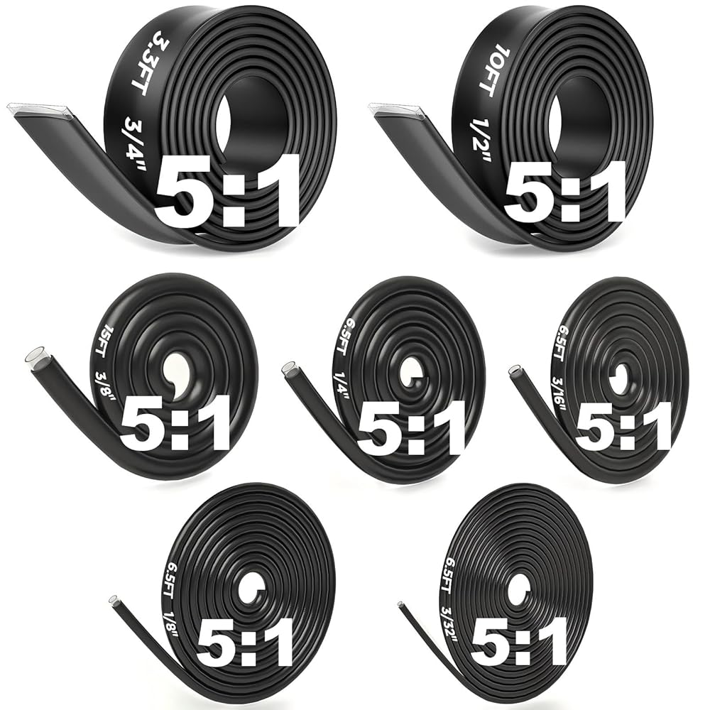 What Does the HUAKAYO Rolled Set Include? This set contains seven commonly used diameters: 3/32” (6.5FT), 1/8” (6.5FT), 3/16” (6.5FT), 1/4” (6.5FT), 3/8” (15FT), 1/2” (10FT), and 3/4” (3.3FT). It's perfect for most automotive repairs, boat wiring, electrical insulation, DIY electronics, or home improvement projects.