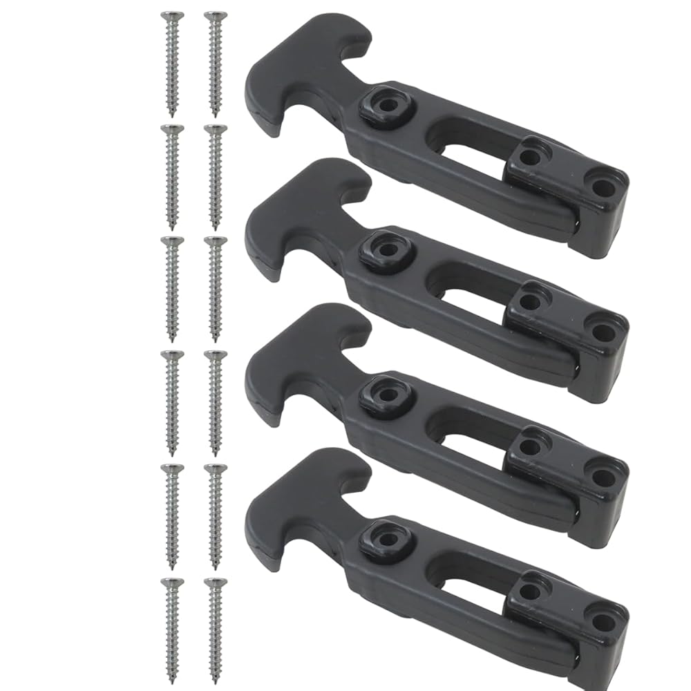 • Product Specification: 4-Pack Black T-Handle Draw Latches with Matching Mounting Screws. Hassle-free installation—no extra hardware purchases required