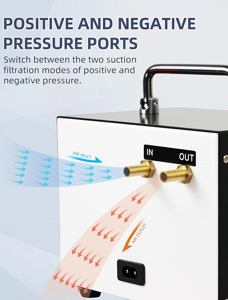 【VERSATILE DUAL-MODE APPLICATION】S---This Lab Vacuum Filtration Pump is engineered for professional use, excelling in Solvent Filtration, Distillation, and Vacuum Drying. Beyond the lab, its unique Integrated Positive and Negative Pressure functionality provides versatile utility for industrial Air Sampling and daily tasks such as Essential Oil Extraction, Home Brewing, and Vacuum Storage Bags.