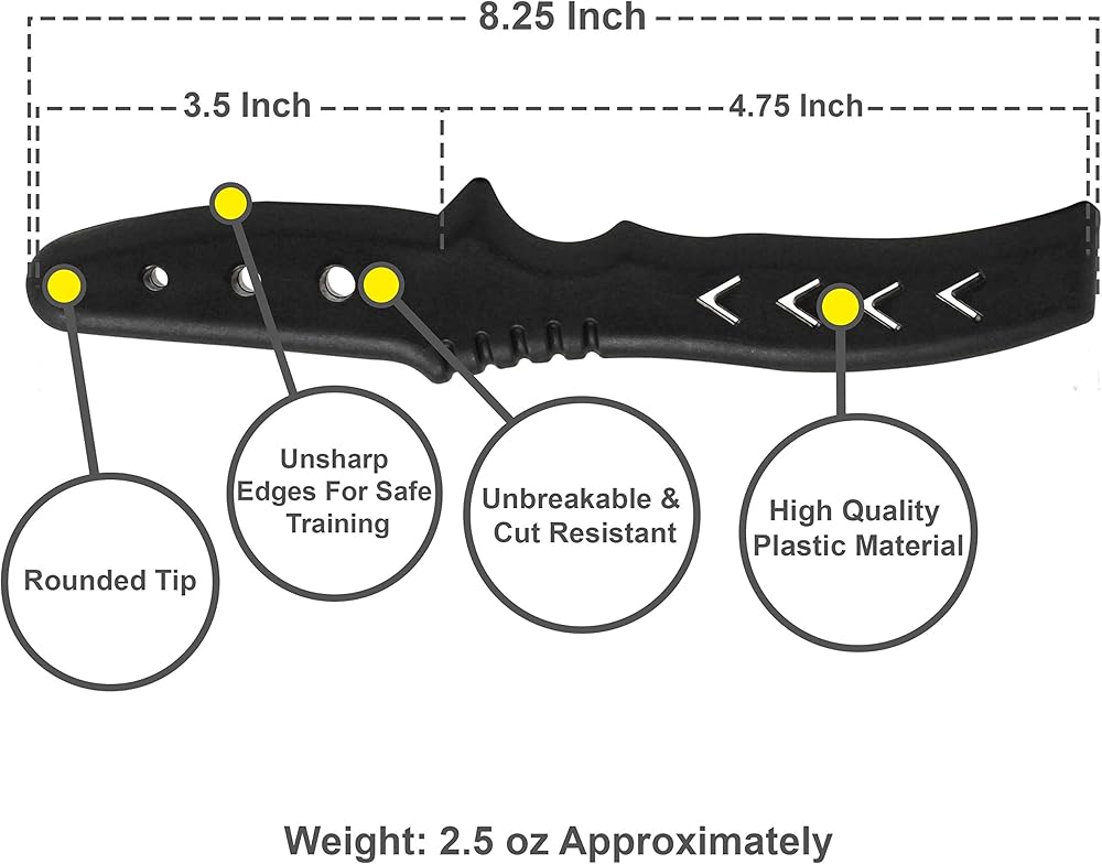 Introducing our new plastic dummy training knife well designed and manufactured from a pretty strong polypropylene material unlike rubber, making it more efficient and strong. This high quality plastic fake knife does exactly what you'd expect. It's durable and safe and it simulates an actual knife in a training environment