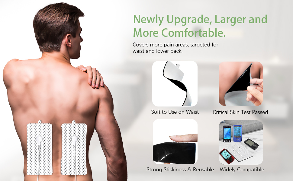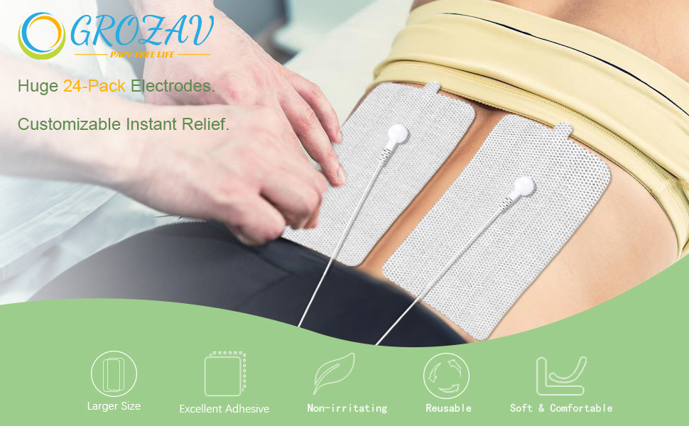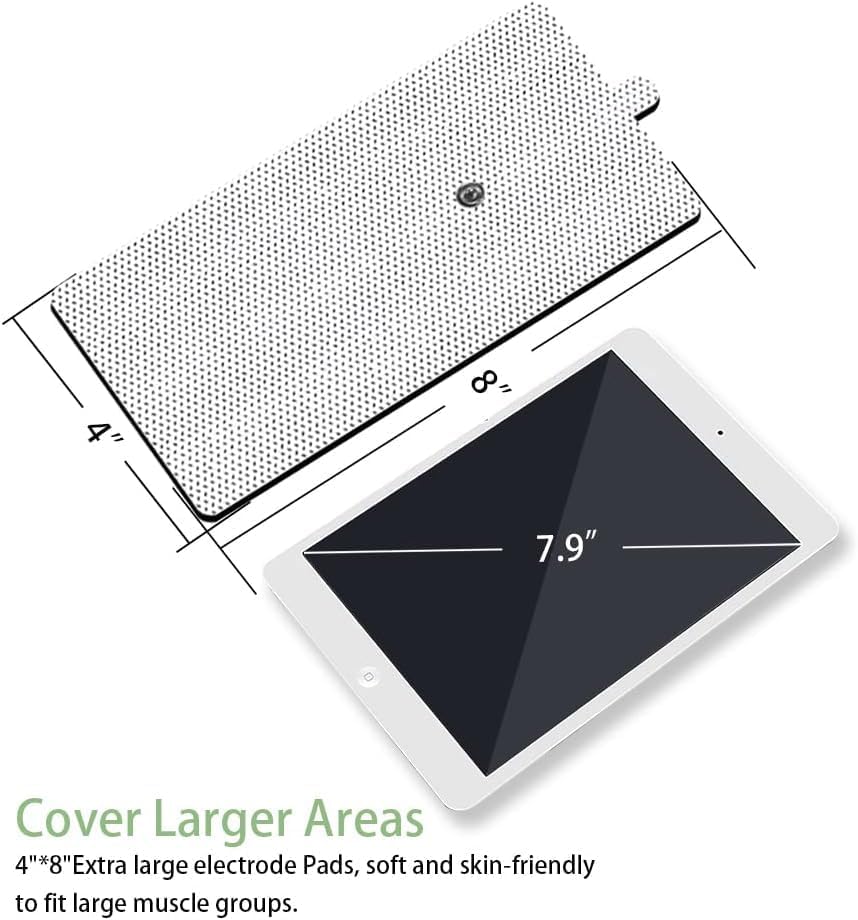 【Customizable Instant Relief】Our jumbo pack includes 24 packs TENS unit pads (2pcs 4*8",6pcs 2*4",8pcs 2*3" & 8pcs 2*2"), perfect for pain relief in areas like your back, arm, ankle, elbow, wrist, shoulder, and knee. Get the most out of your TENS unit or stim machine with this versatile set!
