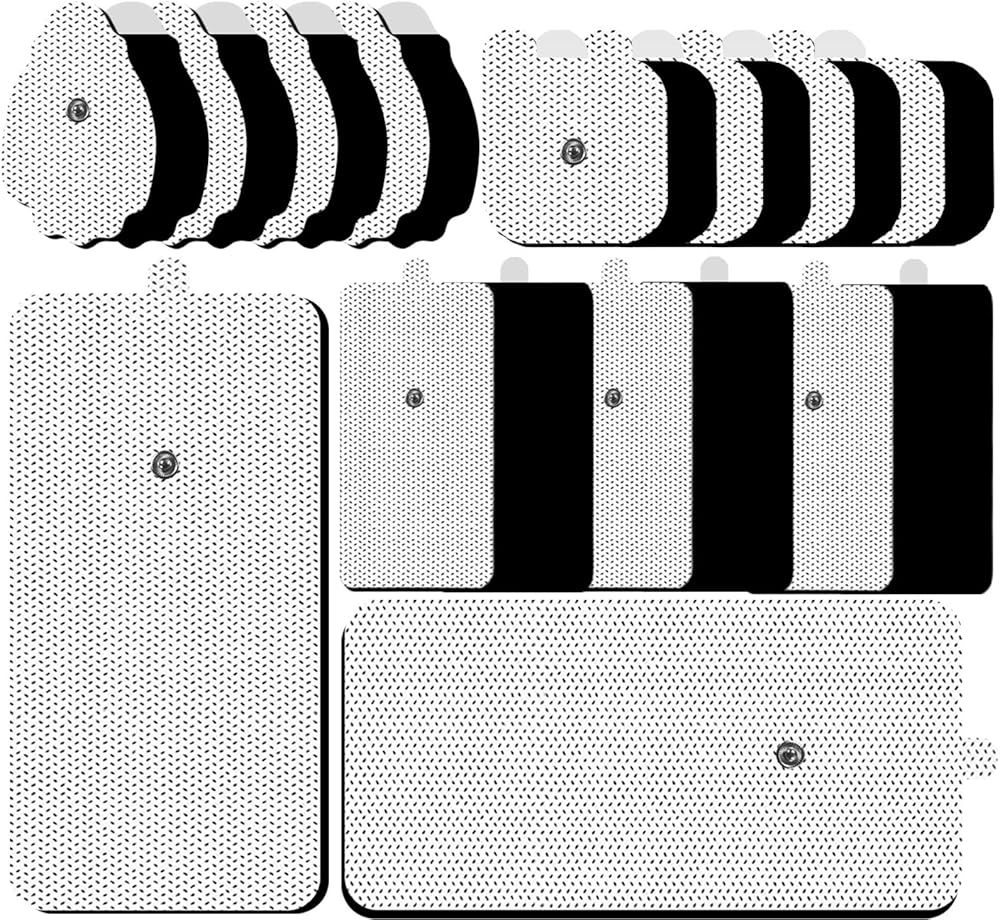 TENS Unit Electrode Pads Combination Set Multiple Sizes Reusable Electrode Patches for Multiple Pain Relief Compatible with TENS EMS Devices Using 3.5mm Button Lead Wires