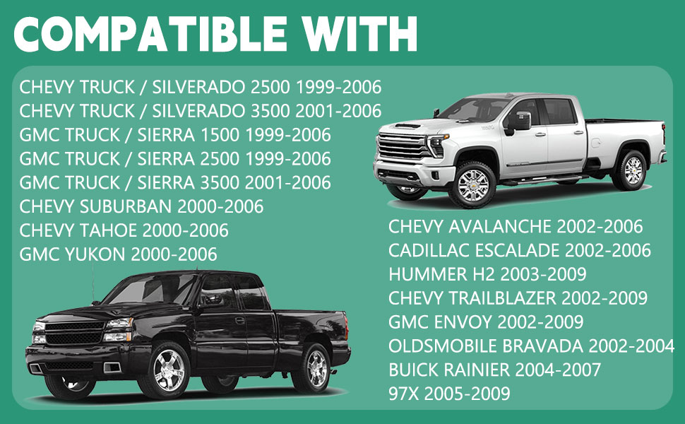 【Compatible Models】: Suburban/Tahoe/Yukon/Avalanche/H2/Trailblazer/Envoy/Bravada/Rainier/Ascender/97X.(see main image for details)