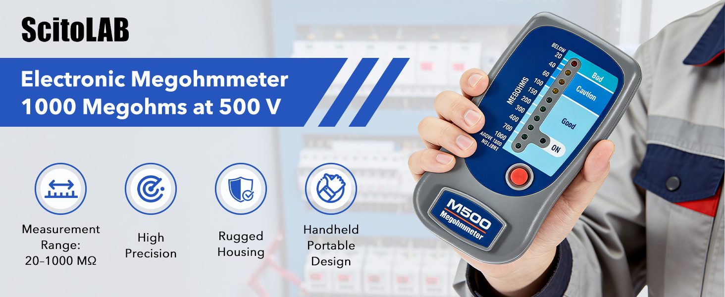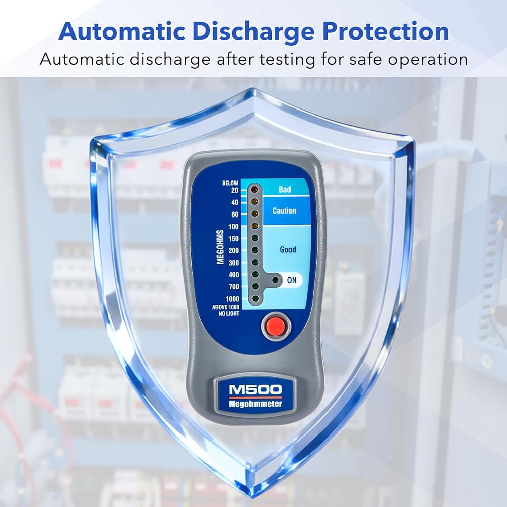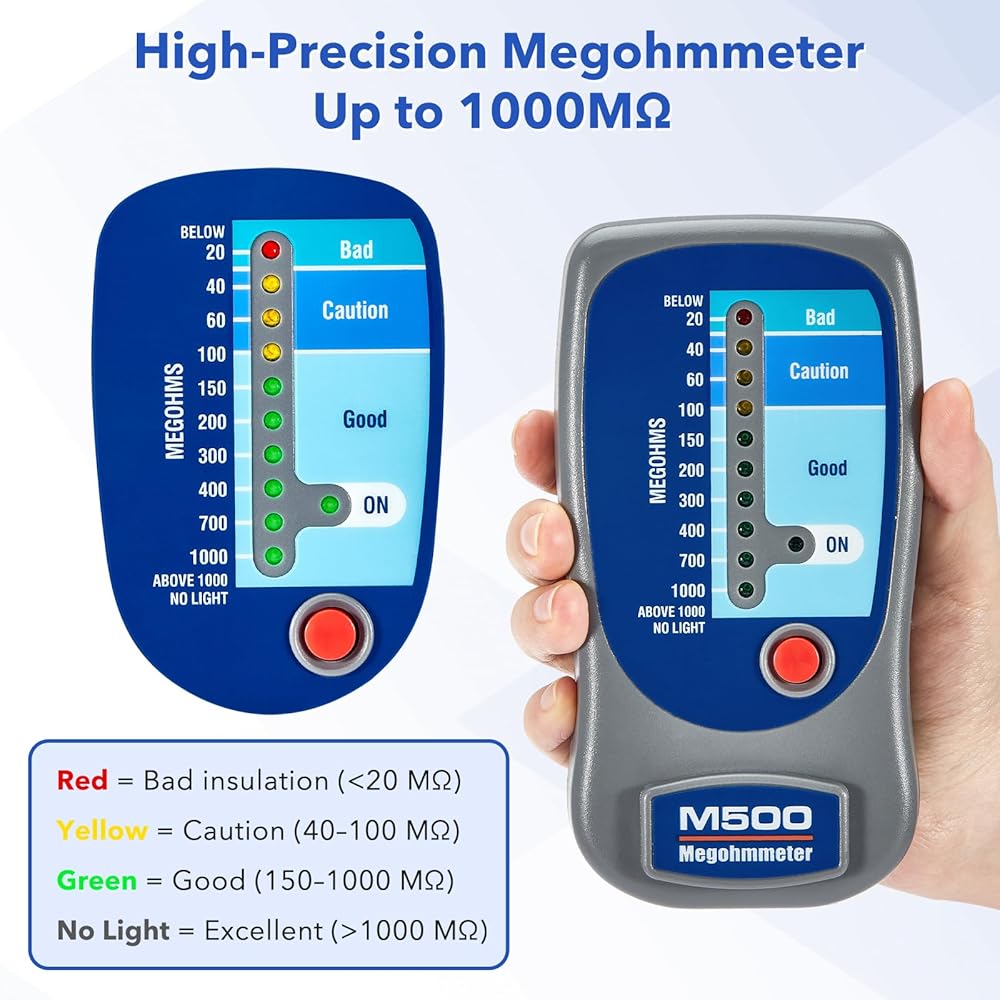 High-Precision Insulation Resistance Measurement: The M500 megohmmeter delivers accurate insulation resistance testing up to 1000 megohms at 500V AC. Designed for professional use on motors, transformers, and so on, it reliably identifies insulation weaknesses to help maintain electrical safety