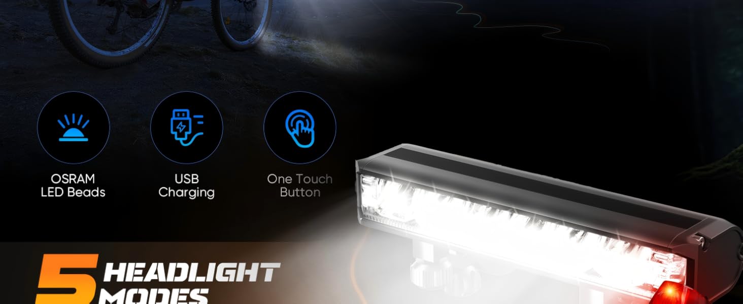 Bike Lights for Night Riding, USB Rechargeable Front Rear Light, Bicycle Headlight Set, Aluminum Light, IPX5 Waterproof Bike Headlight Taillight for Adult Kid Mountain MTB Off-Road Cycling