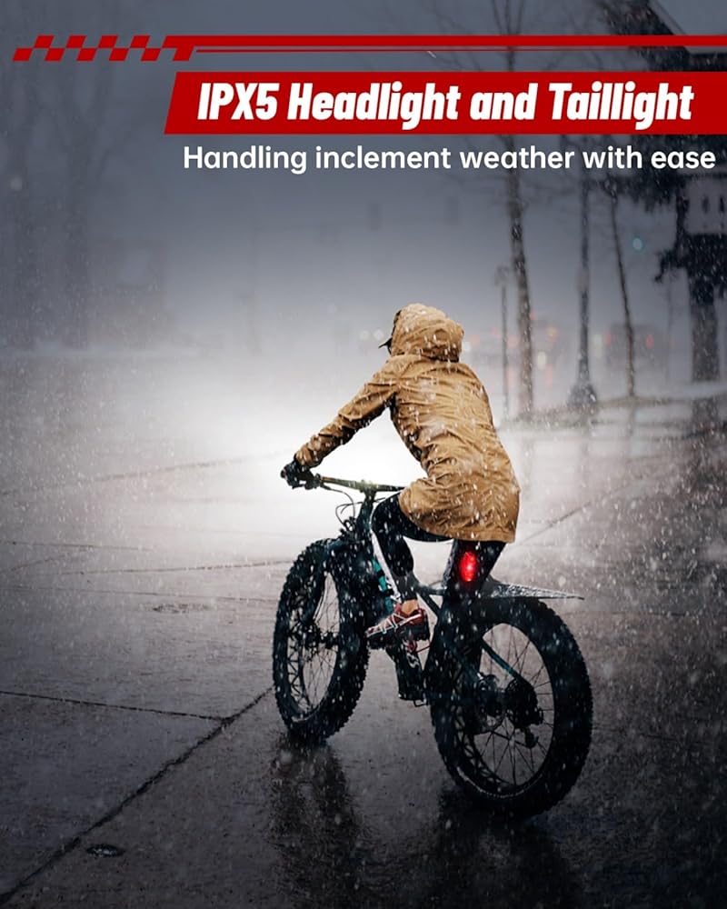 IPX5 waterproof housing: The powerful LED bicycle light has passed the IPX5 waterproof test, maintaining excellent performance even in rain and fog. The housing of the bicycle headlight is made of high-strength aluminum alloy, which has good shock resistance and heat dissipation.