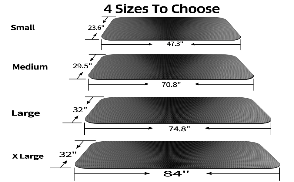 Measures:47.3-inch x 23.6-inch - (120cm x 60cm),There are many sizes to choose from, please choose the size that is right for you according to the area of your fitness equipment.The treadmill mat comes with a storage bag and sports towel.