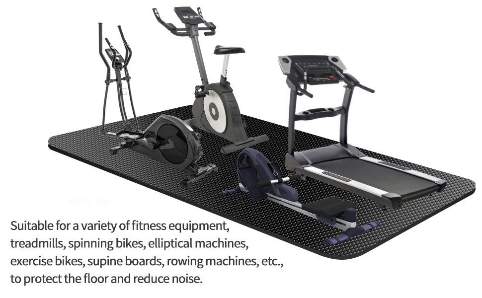 Versatile practical quality mat, this mat is very practical, He fits a variety of fitness equipment, Such as: Exercise equipment,Treadmill mat,Bike Trainer,Elliptical,Rowing machine,Spin Bike,Exercise Bike Mat, Stationary Bike. And so on... When you need to do exercise,It is also suitable for doing various exercises to make your exercise better and protect your body, Such as:Exercise,Fitness,Weightlifting,Home gym,Yoga,Jump Rope,And so on.So you're gonna love it。