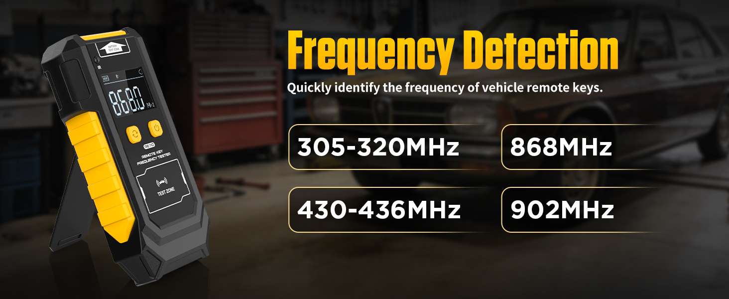 Remote Key Frequency Tester for RF or Infrared Signal Testing;3-in-1 Key Frequency Detection & Button Battery Voltage Check; 315/433/868/902MHz RF & Infrared Signal Detection.