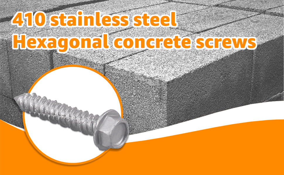 Premium materials: Concrete screws are crafted from 410 stainless steel and coated for superior moisture resistance, rust prevention, and corrosion resistance, ensuring long-lasting durability