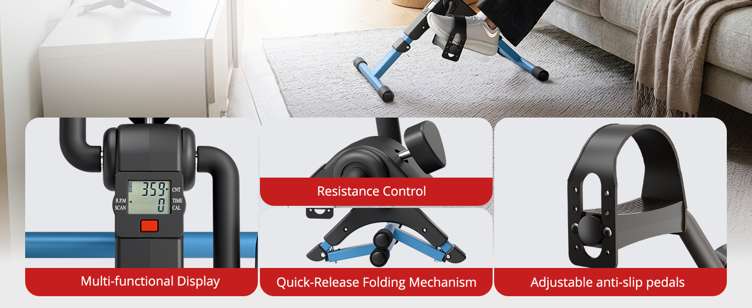 Tension Adjustable- Rotate knob to control the level of resistance , it offers low resistance for light exercise ,pedal is very easy even for the elderly people .