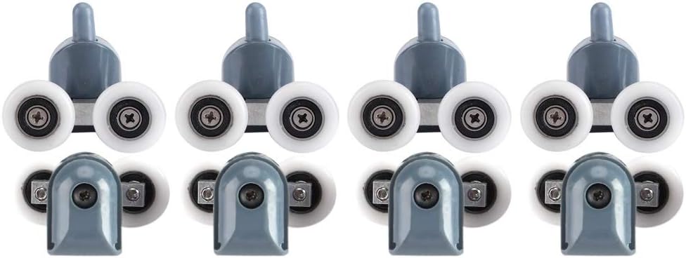 100% new . Designed for use on 5mm or 6mm glass doors. Easy glide rollers and easy . Wear wheels feature smooth, low noise sliding. The shower door rollers set include 4 upper rollers and 4 bottom rollers. Made of plastic, nylon, 304 stainless steel and other material, not easy to rust. for most shower enclosures, shower cabins and steam cabin enclosures.