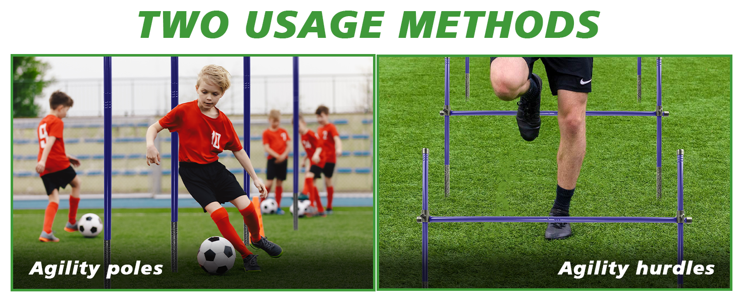 Two Usage Methods: The soccer agility pole can be easily disassembled and assembled. These agility training equipment can not only be used as agility poles but also as agility hurdles.