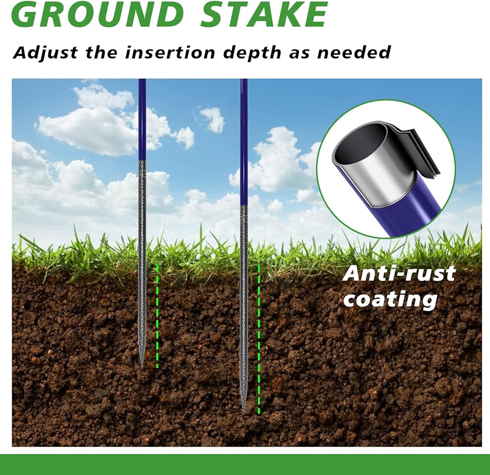 Ground Stake: The surface of the ground stake is treated with high-temperature spray painting, making it resistant to rust. You can adjust the insertion depth as needed to ensure it doesn't tilt.