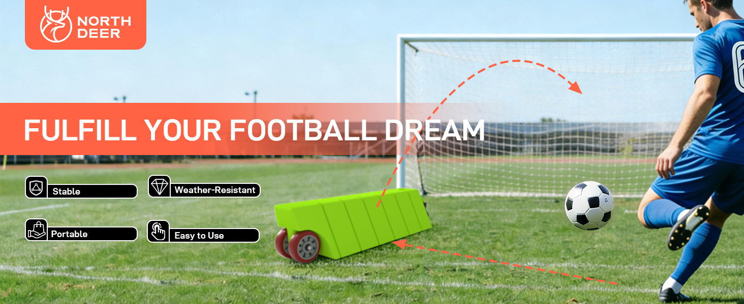 Northdeer Soccer Rebound Board, 46 X 11.7 Inch Portable Soccer Training Equipment, Dual-Surface Rebounder with Adjustable Angle, Equipped with Water Pipe, Ball Trainer and Six Disc Cones