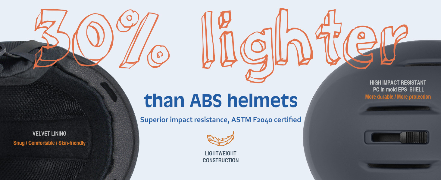 Ultra-Light In-Mold Shell / 30% lighter than ABS helmets, with a bonded shell for lasting durability and zero neck fatigue.