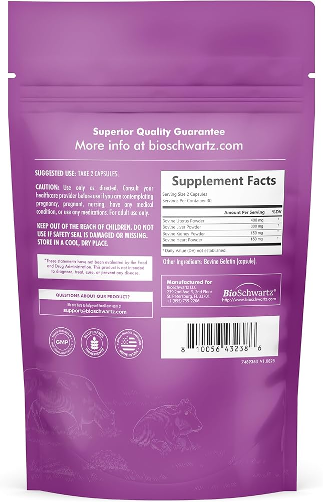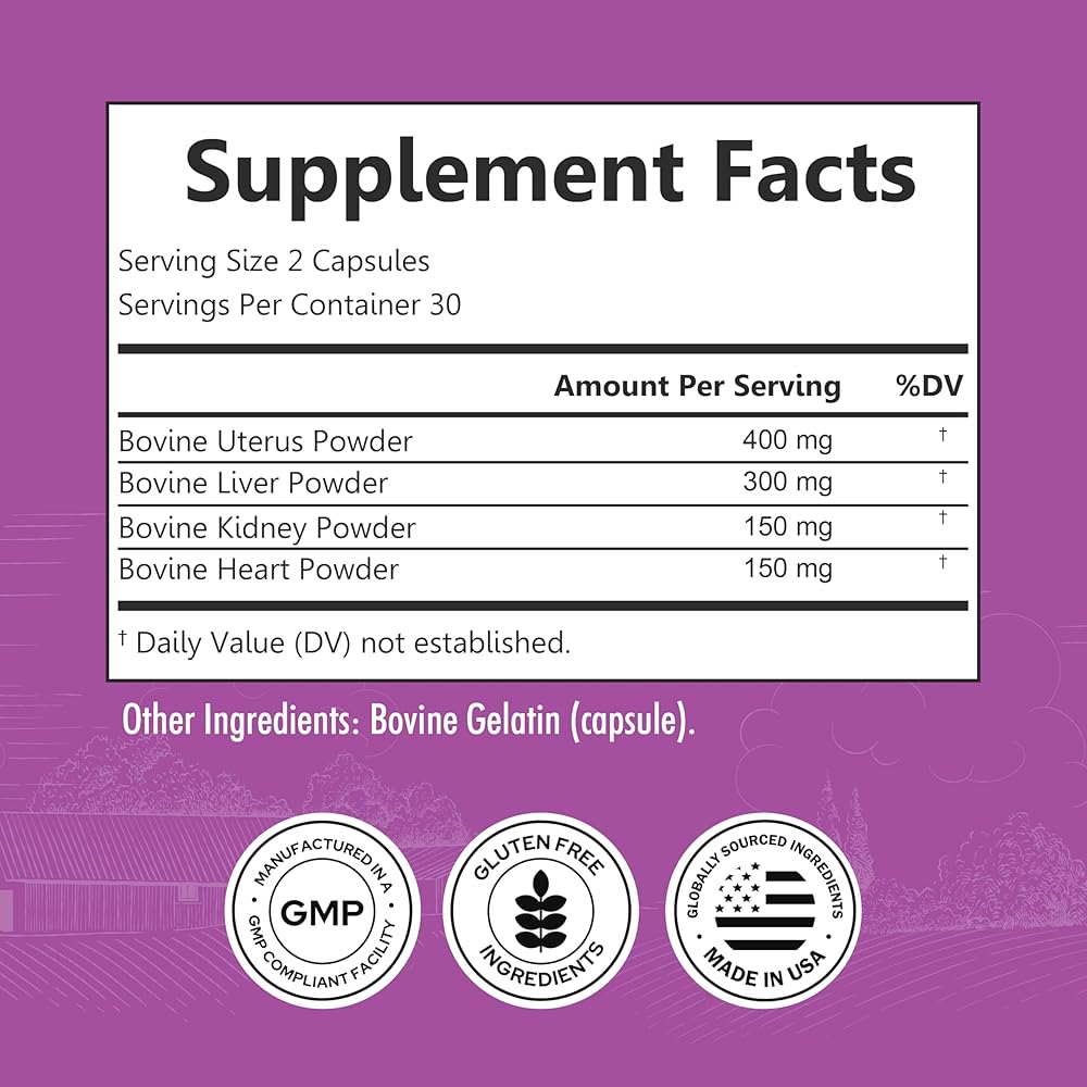 Empower Your Daily Nutritional Needs: This female beef organ supplement taps into the nutrient-rich benefits of organ meat, traditionally used to support women's health, and conveniently packages them in easy-to-swallow capsules - Experience the essential powerhouse of nature's multi-vitamins; nutrients that support your body's daily nutritional requirements and enhance your life with each dose, ensuring you can live and feel your best at any stage