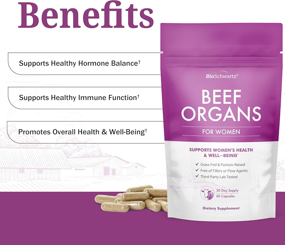 Beef Organs for Women: Our Bioschwartz beef organ supplement for women is designed to naturally support healthy hormone balance and whole body health - with every capsule you tap into the ancestral feminine wisdom of nutrient-dense beef organs, sourced from grass-fed, pasture-raised, humanely-treated cattle, providing a potent ally in maintaining the hormonal harmony essential for women's health and well-being