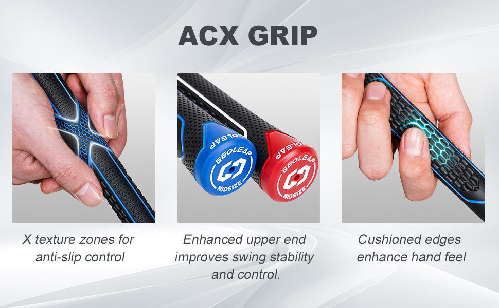 Geoleap—Conquer the course from the grip! Product Details Color: Gray ,black red, black blue, navy Size: Standard/Midsize/Jumbo Material:Top-quality rubber Product Features Product Features 【Enhanced Comfort & Reduced Fatigue】 Experience the ultimate in comfort with our premium golf grips. Designed with a soft yet supportive feel, these midsize golf grips provide exceptional cushioning that minimizes hand strain during long rounds, helping you maintain a relaxed and consistent grip from the first tee to the final putt. 【Multiple Sizes & Styles to Match Your Game】 This versatile golf club grips kit offers the perfect fit for every golfer, including standard, midsize, and jumbo sizes. Available in several vibrant colors, this complete set allows both men and women to personalize their clubs and express their style on the course. 【The Smart Choice for Golfers of All Levels】 Looking for a practical yet thoughtful gift? Geoleap golf club grips are an excellent choice for any golfer. Combining reliable performance with sleek design, they make regripping simple and rewarding—perfect for upgrading your own set or surprising a fellow enthusiast. 【Easy Installation, Professional Results】 Our golf grip is designed for straightforward installation. With clear instructions and a user-friendly design, you can confidently install them at home without special tools or expertise. It's the convenient way to refresh your clubs and instantly improve your connection with every swing. 【After-sales Service】 We stand behind every product we sell. Our customer support team is committed to providing prompt, helpful assistance for any questions or concerns. Whether you need installation advice or product guidance, we're here to ensure your experience with our golf grips is completely satisfying. 【About Geoleap】 Geoleap is dedicated to delivering high-quality, performance-driven products to golfers worldwide, including our premium golf grips for men and women. With a focus on innovative design and durable construction, Geoleap golf grips reflect our commitment to helping players of all levels enjoy the game with greater confidence and control. Choose Geoleap for equipment that supports your progress—and your passion.
