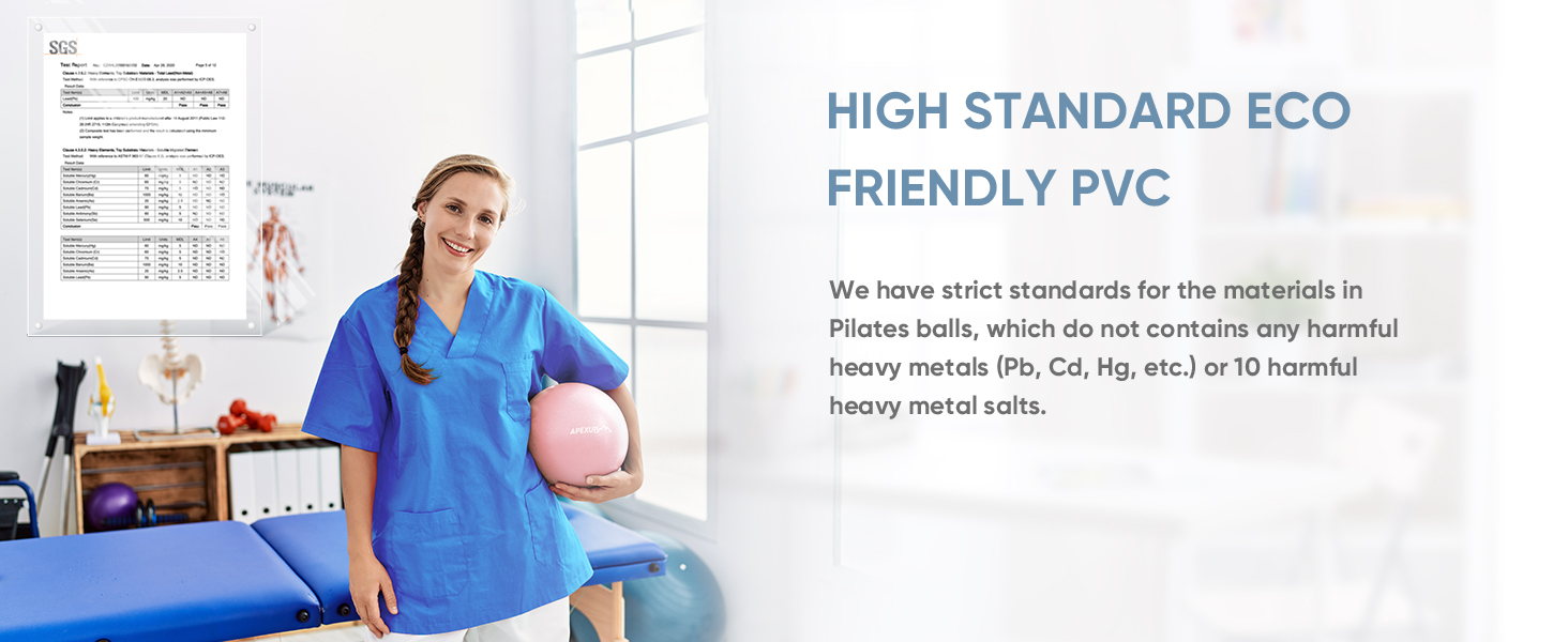 This Pilates ball is crafted from high-quality, eco-friendly PVC material, this fitness ball ensures safety and durability with its soft, flexible, and skin-friendly design. Reinforced with a honeycomb structure, it can withstand up to 550 lbs of weight without bursting, even when pierced by sharp objects. The fine texture provides excellent non-slip properties for a secure exercise experience. Easy to inflate in just over ten seconds using the included pump or portable PP inflatable straw, it securely seals with the included plug to prevent air leaks. Compact and lightweight, it conveniently fits in your bag for easy carry and storage. What exercises can Pilates balls do? Core Strengthening: Exercises focused on strengthening the core muscles, including abdominals, obliques, and lower back. Balance & Stability: Exercises aimed at improving balance and stability, promoting better posture and coordination. Flexibility & Stretching: Movements designed to enhance flexibility, increase range of motion, and reduce muscle tension. Physical Therapy: Exercises tailored for physical therapy purposes, aiding in injury recovery and rehabilitation.